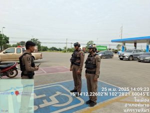 วันที่ 25 พฤศจิกายน พ.ศ. 2568 เวลา 11.00 – 16.00 น. ภายใต้การอำนวยการของ พ.ต.อ.สิทธิศักดิ์ พรหมหมื่นไวย ผกก.สภ.พิมาย, พ.ต.ท.ประเสริฐ ฟุ้งพิมาย รอง ผกก.ป.สภ.พิมาย มอบหมายให้ พ.ต.ต.พิทยา การสร้าง สวป.สภ.พิมาย พร้อมด้วยสายตรวจรถยนต์/สายตรวจจราจร ร่วมตรวจตราเพื่อป้องกันปราบปรามอาชญากรรมในพื้นที่รับผิดชอบ ดังนี้