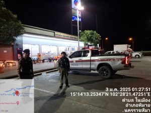 วันที่ 3 มกราคม พ.ศ. 2568 เวลา 00.01 น. ภายใต้การอำนวยการของ พ.ต.อ.สิทธิศักดิ์ พรหมหมื่นไวย ผกก.สภ.พิมาย, พ.ต.ท.ประเสริฐ ฟุ้งพิมาย รอง ผกก.ป.สภ.พิมาย มอบหมายให้ พ.ต.ต.พิทยา การสร้าง สวป.สภ.พิมาย พร้อมด้วยสายตรวจรถยนต์ และสายตรวจรถจักรยานยนต์ ร่วมตรวจตราเพื่อป้องกันปราบปรามอาชญากรรมในพื้นที่รับผิดชอบ ดังนี้
