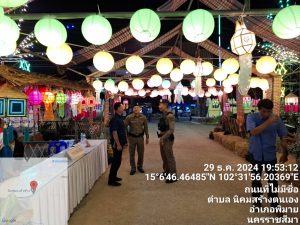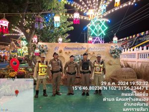 วันที่ 29 ธันวาคม พ.ศ. 2567 เวลา 19.00 น. ภายใต้การอำนวยการของ พ.ต.อ.สิทธิศักดิ์ พรหมหมื่นไวย ผกก.สภ.พิมาย, พ.ต.ท.ประเสริฐ ฟุ้งพิมาย รอง ผกก.ป.สภ.พิมาย มอบหมายให้ พ.ต.ต.พิทยา การสร้าง สวป.สภ.พิมาย พร้อมด้วยสายตรวจจราจร ร่วมตรวจตราเพื่อป้องกันอาชญากรรมในพื้นที่ช่วงเทศกาลปีใหม่ 2568 ดังนี้