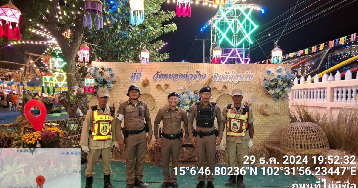วันที่ 29 ธันวาคม พ.ศ. 2567 เวลา 19.00 น. ภายใต้การอำนวยการของ พ.ต.อ.สิทธิศักดิ์ พรหมหมื่นไวย ผกก.สภ.พิมาย, พ.ต.ท.ประเสริฐ ฟุ้งพิมาย รอง ผกก.ป.สภ.พิมาย มอบหมายให้ พ.ต.ต.พิทยา การสร้าง สวป.สภ.พิมาย พร้อมด้วยสายตรวจจราจร ร่วมตรวจตราเพื่อป้องกันอาชญากรรมในพื้นที่ช่วงเทศกาลปีใหม่ 2568 ดังนี้