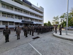 วันที่ 24 มีนาคม พ.ศ.2567 เวลา 08.30 – 13.00 น. พ.ต.อ.ฉัฐวัชร วงศ์วาสน์ รอง ผบก.ภ.จว.นครราชสีมา พร้อมด้วย พ.ต.อ.สิทธิศักดิ์ พรหมหมื่นไวย ผกก.สภ.พิมาย, พ.ต.ท.ประเสริฐ ฟุ้งพิมาย รอง ผกก.ป.สภ.พิมาย, พ.ต.ท.ไพบูรณ์ คูณค้ำ รอง ผกก.สส.สภ.พิมาย, พ.ต.ท.วิทยา บุญวัน รอง ผกก.(สอบสวน)สภ.พิมาย และข้าราชการตำรวจ สภ.พิมาย ร่วมปฏิบัติหน้าที่รักษาความปลอดภัยและอำนวยความสะดวกการจราจรแก่นายกรัฐมนตรีและคณะฯ ซึ่งเดินทางมาปฏิบัติภารกิจตรวจราชการ ณ โครงการส่งน้ำและบำรุงรักษาทุ่งสัมฤทธิ์ ต.ในเมือง อ.พิมาย จ.นครราชสีมา