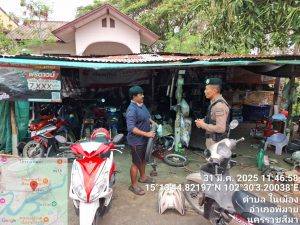 – ตรวจเยี่ยมประชาสัมพันธ์ร้านซ่อมรถจักรยานยนต์ กำชับผู้ประกอบการห้ามมิให้มีการดัดแปลงสภาพรถหรือแต่งซิ่งให้กับลูกค้าที่มาใช้บริการ เพื่อป้องกันการกระทำความผิดเกี่ยวกับการแข่งขันรถในทางและการขับขี่รถส่งเสียงดัง