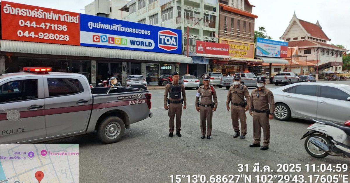 วันที่ 31 มีนาคม พ.ศ. 2568 เวลา 10.30 – 13.30 น. ภายใต้การอำนวยการของ พ.ต.อ.สิทธิศักดิ์ พรหมหมื่นไวย ผกก.สภ.พิมาย, พ.ต.ท.ประเสริฐ ฟุ้งพิมาย รอง ผกก.ป.สภ.พิมาย มอบหมายให้ พ.ต.ต.พิทยา การสร้าง สวป.สภ.พิมาย, ร.ต.อ.สุพรรณโรจน์ อิ่มวิเศษ รอง สวป.สภ.พิมาย (ปฏิบัติหน้าที่ร้อยเวรจราจร) พร้อมด้วยสายตรวจรถยนต์/รถจักรยานยนต์ และสายตรวจจราจร ร่วมตรวจตราเพื่อป้องกันปราบปรามอาชญากรรมในพื้นที่รับผิดชอบ ดังนี้