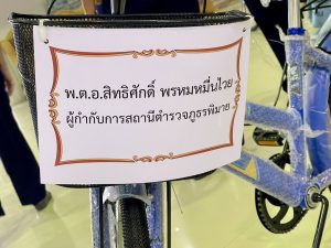 วันที่ 4 พฤศจิกายน พ.ศ. 2567 เวลา 15.40 น. พ.ต.อ.สิทธิศักดิ์ พรหมหมื่นไวย ผกก.สภ.พิมาย พร้อมด้วย พ.ต.ท.สุวกฤษฏิ์ พิมพ์จันทร์ สว.สส.สภ.พิมาย ร่วมมอบเงินและรถจักรยาน จำนวน 1 คัน แก่ นางปฏิมา สินโทรัมย์ นายกกิ่งกาชาดอำเภอพิมาย สำหรับใช้ออกรางวัลในร้านกิ่งกาชาดอำเภอพิมาย ในงานเทศกาลเที่ยวพิมาย ประจำปี 2567