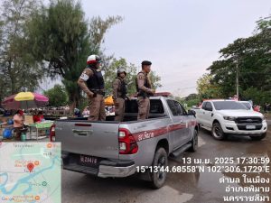 วันที่ 13 เมษายน พ.ศ. 2568 เวลา 11.30 น. พ.ต.อ.สิทธิศักดิ์ พรหมหมื่นไวย ผกก.สภ.พิมาย, พ.ต.ท.ประเสริฐ ฟุ้งพิมาย รอง ผกก.ป.สภ.พิมาย, พ.ต.ท.ภครัช สายสมบูรณ์ รอง ผกก.สส.สภ.พิมาย พร้อมด้วยข้าราชการตำรวจ สภ.พิมาย ร่วมกับ เจ้าหน้าที่ฝ่ายปกครองอำเภอพิมาย หน่วยงานราชการ และอาสาสมัครกู้ภัยในพื้นที่ ร่วมพิธีปล่อยแถว/ชี้แจง/กำชับการปฏิบัติหน้าที่อำนวยความสะดวกการจราจรและรักษาความปลอดภัยงานเทศกาลสงกรานต์ พ.ศ. 2568 ณ บริเวณลานด้านหน้า สภ.พิมาย โดยมี นายศิวะเสก สินโทรัมย์ นายอำเภอพิมาย เป็นประธานในพิธี