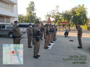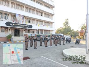 วันที่ 28 มกราคม พ.ศ. 2569 เวลา 08.00 น. พ.ต.อ.ถึงพร ปานทอง ผกก.สภ.พิมาย, พ.ต.ท.ประเสริฐ ฟุ้งพิมาย รอง ผกก.ป.สภ.พิมาย มอบหมายให้ พ.ต.ท.พิทยา การสร้าง สวป.สภ.พิมาย นำข้าราชการตำรวจ สภ.พิมาย ร่วมเข้าแถวเคารพธงชาติ, สวดมนต์ไหว้พระ และได้กำชับการปฏิบัติหน้าที่ราชการ ดังนี้