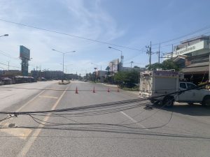 วันที่ 14 พฤศจิกายน พ.ศ. 2568 เวลา 13.20 น. ร.ต.อ.สังวาลย์ สกุลฤทธิสิงห์ รอง สว.จร.สภ.พิมาย พร้อมด้วยเจ้าหน้าที่สายตรวจจราจร สภ.พิมาย ร่วมตรวจสอบและอำนวยความสะดวกการจราจรอุบัติเหตุรถยนต์บรรทุกเกี่ยวสายไฟฟ้าขาด กีดขวางพื้นผิวการจราจร บริเวณหน้าห้างโลตัสพิมาย ต.ในเมือง อ.พิมาย จ.นครราชสีมา พร้อมทั้งได้ประสานการไฟฟ้ามาร่วมดำเนินการเก็บกู้สายไฟ เพื่อให้สามารถเปิดการจราจรได้ตามปกติต่อไป