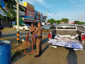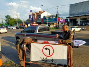 วันที่ 5 พฤศจิกายน พ.ศ.2566 พ.ต.อ.สิทธิศักดิ์ พรหมหมื่นไวย ผกก.สภ.พิมาย มอบหมายให้ พ.ต.ท.ประเสริฐ ฟุ้งพิมาย รอง ผกก.ป.สภ.พิมาย, พ.ต.ต.วุฒิพงษ์ สุดสีเลี้ยง สวป.สภ.พิมาย พร้อมเจ้าหน้าที่จราจร สภ.พิมาย ดำเนินการติดตั้งป้ายประชาสัมพันธ์ต่างๆ เพื่อช่วยอำนวยความสะดวกให้แก่ประชาชนที่จะเดินทางมาท่องเที่ยวในเทศกาลเที่ยวพิมายและการแข่งขันเรือยาวชิงถ้วยพระราชทานฯ ประจำปี พ.ศ.2566 ระหว่างวันที่ 8 – 12 พฤศจิกายน 2566 เพื่อให้พี่น้องประชาชนและนักท่องเที่ยว ได้ทราบถึงเส้นทางการเดินรถ และพื้นที่ในการจอดรถยนต์/รถจักรยายนยนต์ ในการจัดงานครั้งนี้