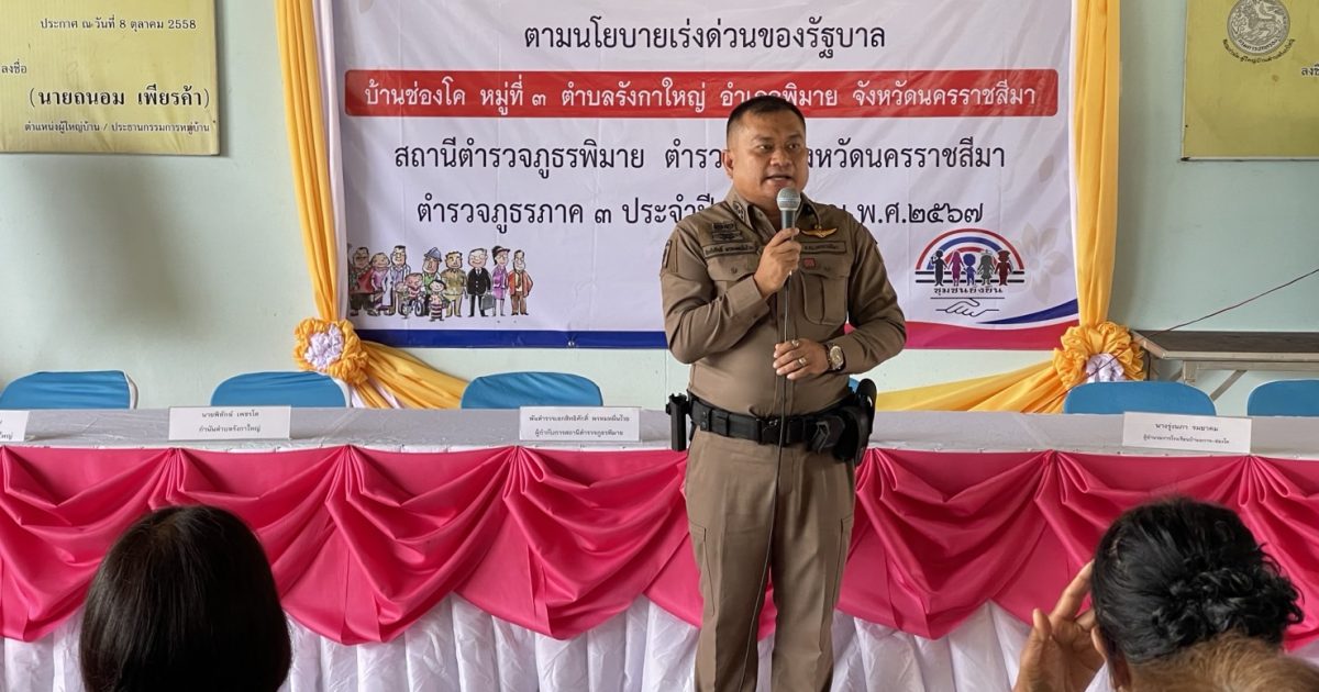 วันที่ 10 มิถุนายน พ.ศ.2567 เวลา 09.00 น. พ.ต.อ.สิทธิศักดิ์ พรหมหมื่นไวย ผกก.สภ.พิมาย, พ.ต.ท.ประยูร ศรีอินทร์ สว.อก.สภ.พิมาย, พ.ต.ต.พิทยา การสร้าง สวป.สภ.พิมาย, พ.ต.ต.พิสาร ทองสมุทร สว.(ชส.)สภ.พิมาย, เจ้าหน้าที่ตำรวจชุดชุมชนมวลชนสัมพันธ์ สภ.พิมาย ร่วมกับอำเภอพิมาย, สาธารณสุขอำเภอพิมาย, เทศบาลตำบลรังกาใหญ่, โรงเรียนบ้านฉกาจช่องโค, วัดใหม่สามัคคีฉกาจช่องโค พร้อมด้วยพี่น้องประชาชนบ้านช่องโค หมู่ที่ 3 ต.รังกาใหญ่ ร่วมพิธีเปิดศูนย์ปฏิบัติการ” โครงการชุมชนบำบัดอย่างยั่งยืน ในพื้นที่แพร่ระบาดยาเสพติดตามนโยบายเร่งด่วนของรัฐบาล” ของสถานีตำรวจภูธรพิมาย ประจำปีงบประมาณ พ.ศ.2567 ณ ศาลาหมู่บ้านช่องโค หมู่ที่ 3 ต.รังกาใหญ่ อ.พิมาย จ.นครราชสีมา โดยมี นายศิวะเสก สินโทรัมย์ นายอำเภอพิมาย เป็นประธานในพิธีเปิดโครงการดังกล่าว