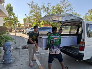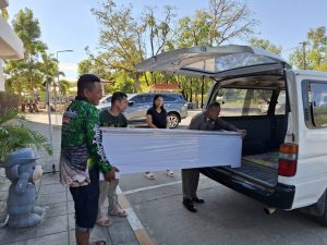 วันที่ 27 ธันวาคม พ.ศ. 2567 เวลา 10.00 น. พ.ต.อ.สิทธิศักดิ์ พรหมหมื่นไวย ผกก.สภ.พิมาย มอบหมายให้ พ.ต.ท.วิทยา บุญวัน รอง ผกก.(สอบสวน)สภ.พิมาย, พ.ต.ท.ประยูร ศรีอินทร์ สว.อก.สภ.พิมาย และ ร.ต.ท.สมทัย ตู้สะกาด รอง สว.(ป.)สภ.พิมาย ร่วมเป็นตัวแทนมอบโลงศพให้แก่ น.ส.กัญญา กว้างนอก (ตัวแทนของญาติผู้เสียชีวิต) เป็นผู้รับมอบโลงศพ ซึ่งผู้เสียชีวิตชื่อ น.ส.แสงจันทร์ ศรีบัวทอง อายุ 40 ปี อยู่บ้านเลขที่ 84 หมู่ที่ 1 ต.ท่าหลวง อ.พิมาย จ.นครราชสีมา เสียชีวิตลงด้วยโรคมะเร็งปอด พ