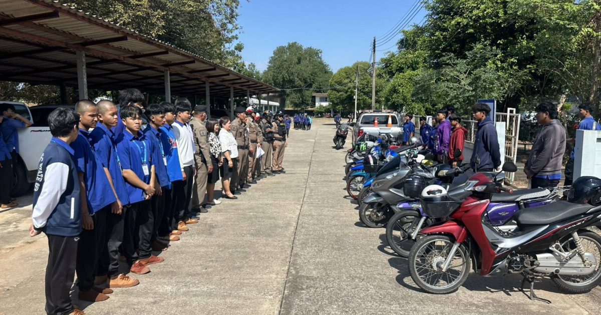 วันที่ 18 ธันวาคม 2568 เวลา 09.30-11.30 น. พ.ต.อ.ถึงพร ปานทอง ผกก.สภ.พิมาย ได้มอบหมายให้ พ.ต.ท.ประเสริฐ ฟุ้งพิมาย รองผกก.ป.สภ.พิมาย, พ.ต.ท.พิทยา การสร้าง สวป.สภ.พิมาย, ร.ต.อ.สังวาลย์ สกุลฤทธิสิงห์ รอง สว.จร.สภ.พิมาย, ร.ต.ท.อนุวัฒน์ คำพรมมาภิรักษ์ รอง สว.(ป)สภ.พิมาย พร้อมด้วยเจ้าหน้าที่สายตรวจจราจร/สายตรวจรถจักรยานยนต์ ประสานความร่วมมือกับคณะครูอาจารย์โรงเรียนนิคมพิมายศึกษา ต.นิคมสร้างตนเอง อ.พิมาย จ.นครราชสีมา เพื่อประชาสัมพันธ์ ตรวจสอบรถจักรยานยนต์ไม่ติดแผ่นป้ายทะเบียน/ดัดเเปลงสภาพฯ/เเต่งท่อเสียงดัง ภายในพื้นที่บริเวณโรงจอดรถของโรงเรียน ตามโครงการ “เปิดโรงเรียน เปิดโรงรถ” ของ สภ.พิมาย จากการตรวจสอบพบรถจักรยานยนต์เข้าข่ายผิดกฎหมาย จำนวน 9 คัน จึงได้แจ้งให้ผู้ปกครองมารับทราบพฤติกรรมของเด็กเพื่อหาแนวทางป้องกันและแก้ไขปัญหา พร้อมกันนี้ได้ว่ากล่าวตักเตือน ทำทัณฑ์ไว้โดยให้แก้ไขเปลี่ยนแปลงให้ถูกต้อง และได้ทำบันทึกประวัตินักเรียน/รายละเอียดรถจักรยานยนต์ดังกล่าวไว้เพื่อติดตามตรวจสอบต่อไป