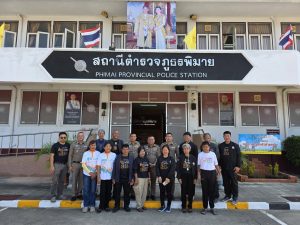 วันที่ 26 พฤศจิกายน พ.ศ. 2568 เวลา 09.45 น. พ.ต.อ.สิทธิศักดิ์ พรหมหมื่นไวย ผกก.สภ.พิมาย, พ.ต.ท.ประเสริฐ ฟุ้งพิมาย รอง ผกก.ป.สภ.พิมาย, พ.ต.ท.วิทยา บุญวัน รอง ผกก.(สอบสวน)สภ.พิมาย, พ.ต.ท.ภครัช สายสมบูรณ์ รอง ผกก.สส.สภ.พิมาย พร้อมด้วยข้าราชการตำรวจในสังกัด ร่วมพิธีรับมอบป้ายโรงพักต้นแบบ “ลด ละ เลิก งดเหล้า เข้าพรรษา” จากองค์กรงดเหล้าเข้าพรรษา โดยข้าราชการตำรวจในสังกัด สภ.พิมาย ได้ร่วมดำเนินโครงการ “ลด ละ เลิก งดเหล้า เข้าพรรษา” อย่างต่อเนื่องมาตั้งแต่ปี พ.ศ.2564 – ปัจจุบัน