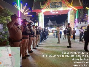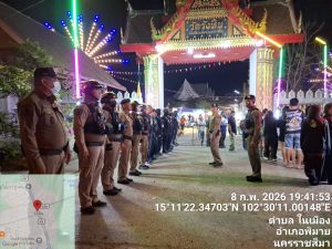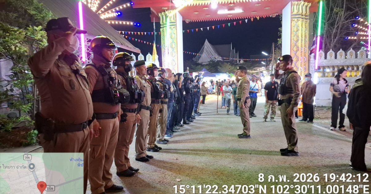 ปล่อยแถวเจ้าหน้าที่ชุดรักษาความสงบเรียบร้อยการแสดงหมอลำ”หมอลำเสียงวิหค นก พงศกร” ณ วัดวังหิน ม.8 ต.ในเมือง อ.พิมาย จ.นครราชสีมา ได้ชี้แจงมอบหมายภารกิจและกำชับการปฏิบัติตามมาตรการป้องกันและรักษาความสงบเรียบร้อยงานมหรสพ หรืองานรื่นเริง ดังนี้