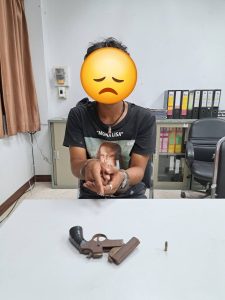 1) อาวุธปืนไทยประดิษฐ์หักลำกล้องไม่มีหมายเลขทะเบียน (ขนาด .22) จำนวน 1 กระบอก