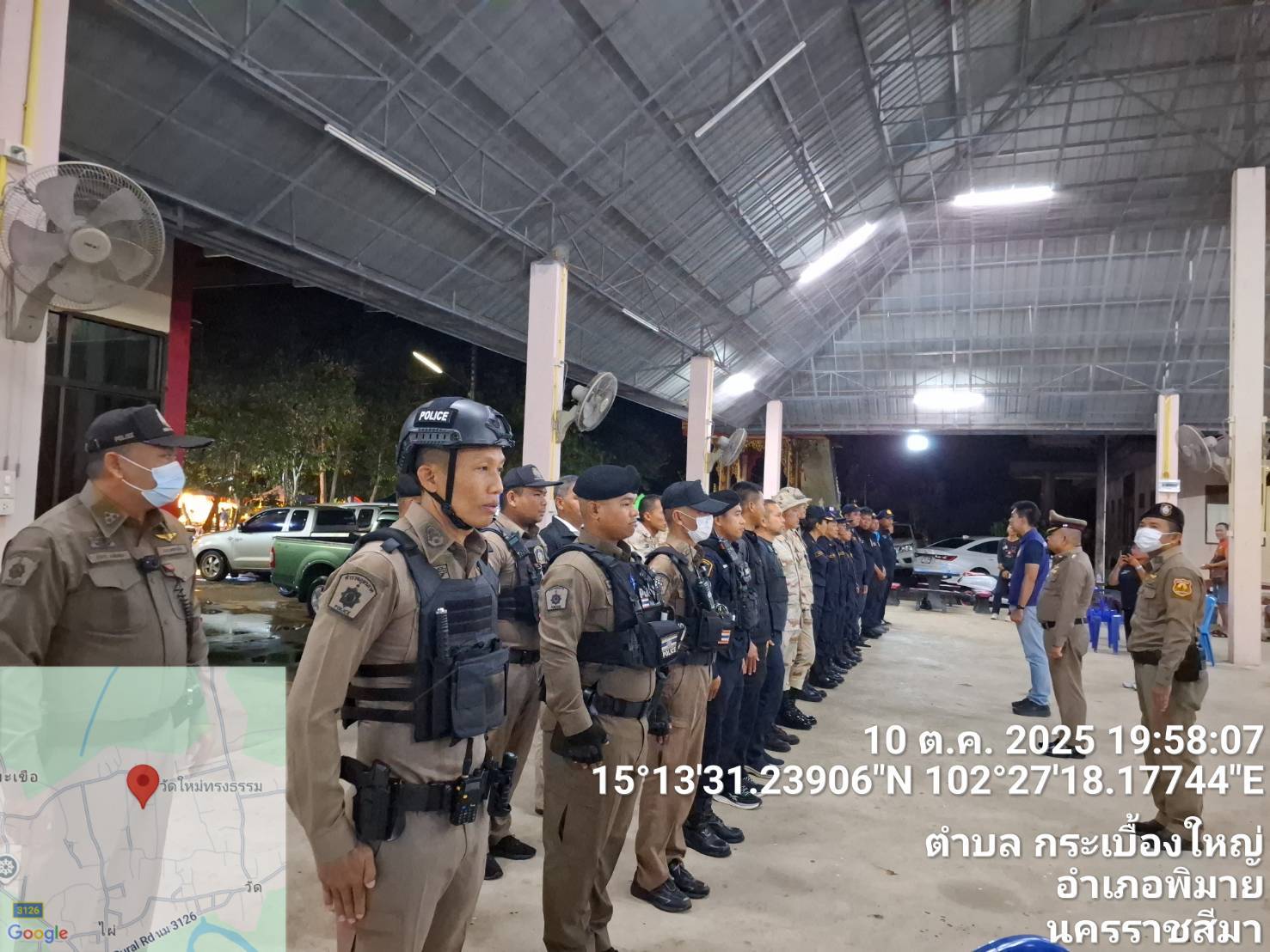 วันที่ 13 ตุลาคม พ.ศ. 2568 เวลา 07.00 น. พ.ต.อ.สิทธิศักดิ์ พรหมหมื่นไวย ผกก.สภ.พิมาย, พ.ต.ต.อรร