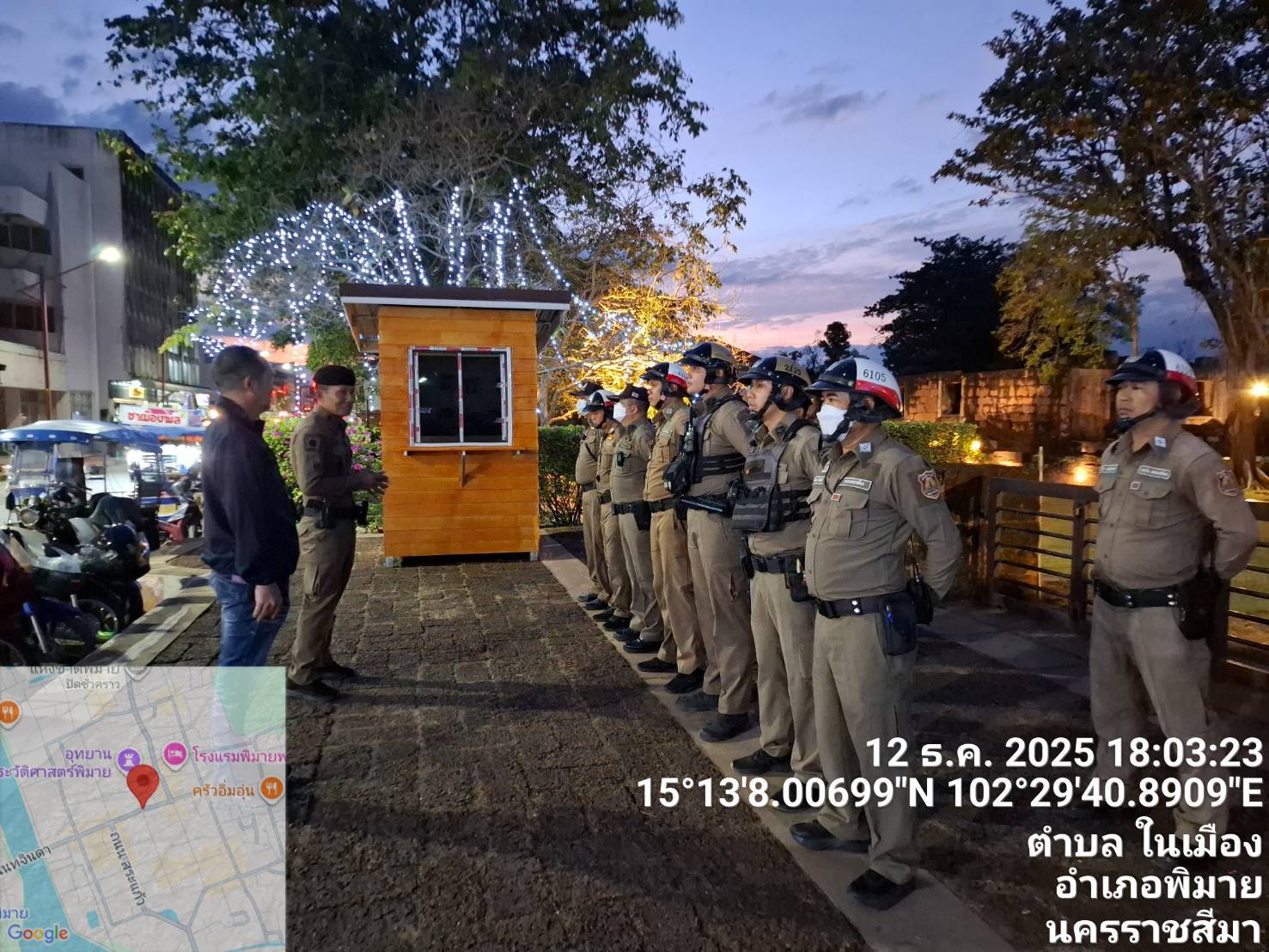 วันที่ 12 ธันวาคม พ.ศ. 2568 ภายใต้การอำนวยการของ พ.ต.อ.ถึงพร ปานทอง ผกก.สภ.พิมาย, พ.ต.ท.ภครัช สาย
