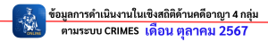 1.ข้อมูลผลการดำเนินงานในเชิงสถิติด้านคดีอาญา 4 กลุ่มตามระบบ CRIMES (ต.ค.67)