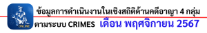2.ข้อมูลผลการดำเนินงานในเชิงสถิติด้านคดีอาญา 4 กลุ่มตามระบบ CRIMES ((พ.ย.67)