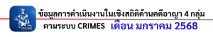 4.ข้อมูลผลการดำเนินงานในเชิงสถิติด้านคดีอาญา 4 กลุ่มตามระบบ CRIMES (ม.ค.68)